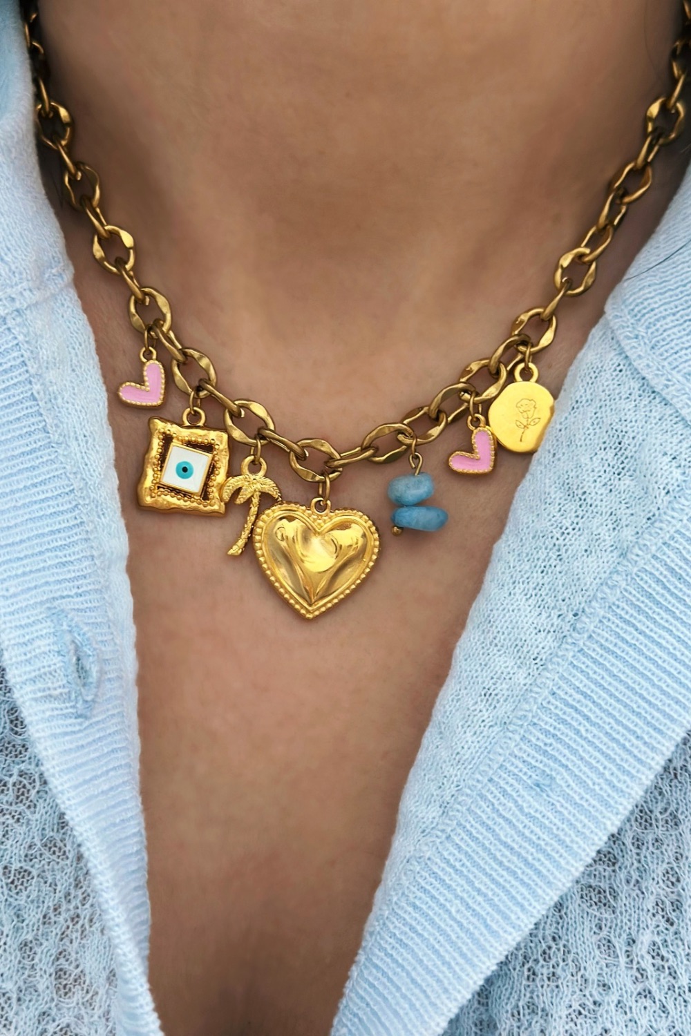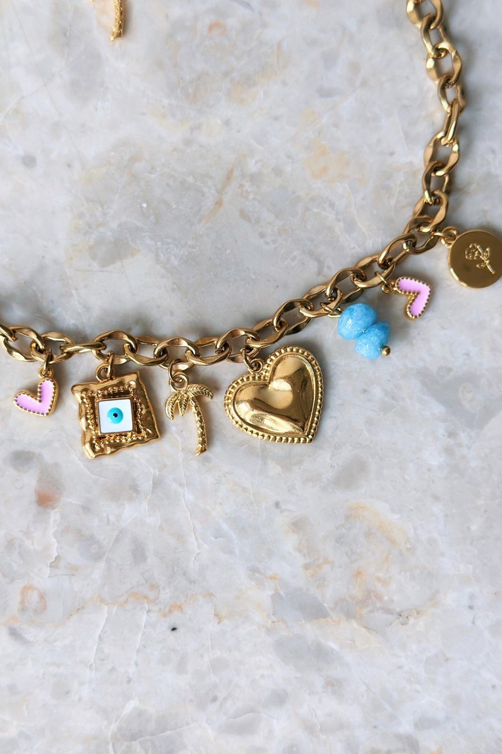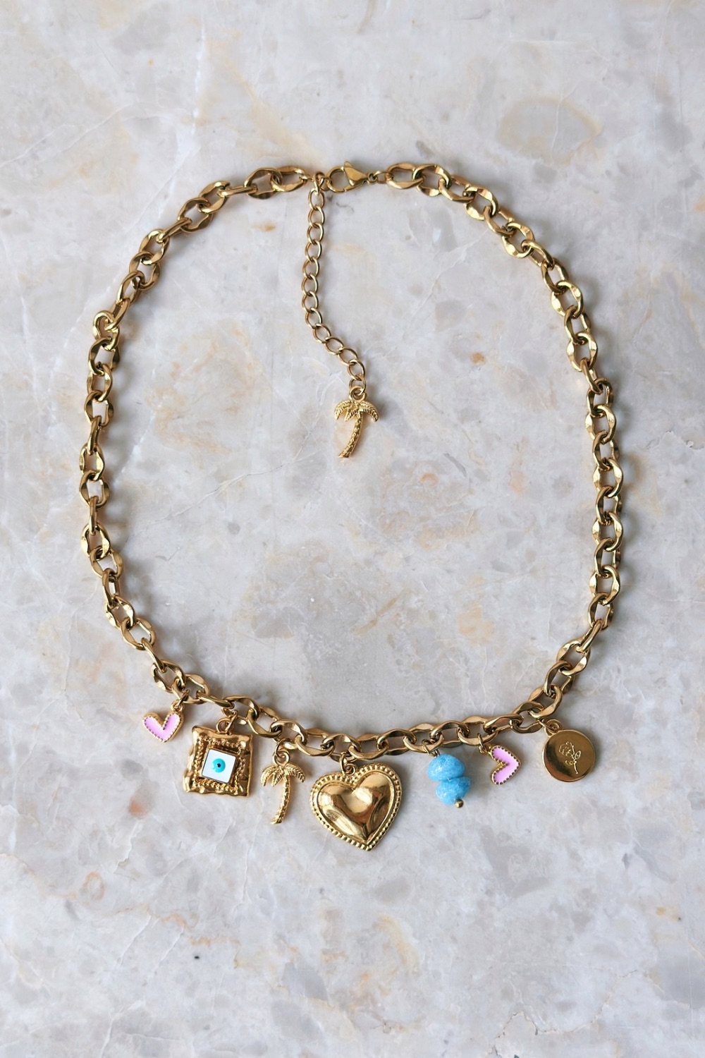 ● Υλικό: αλυσίδα από ατσάλι και επιχρυσωμένα ορειχάλκινα στοιχεία