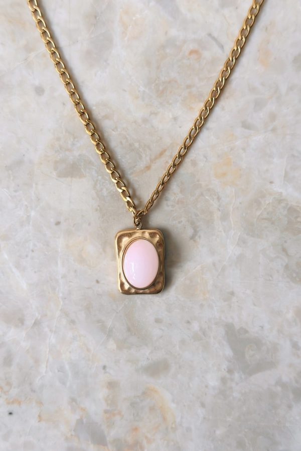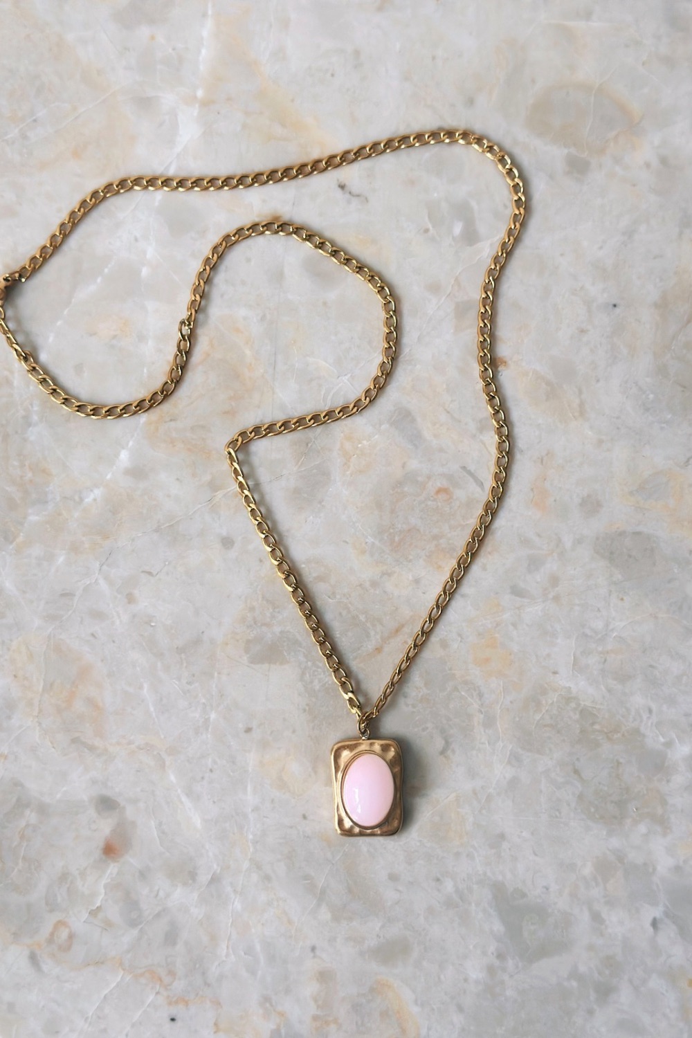● Υλικό: επιχρυσωμένο ατσάλι και ροζ πέτρα