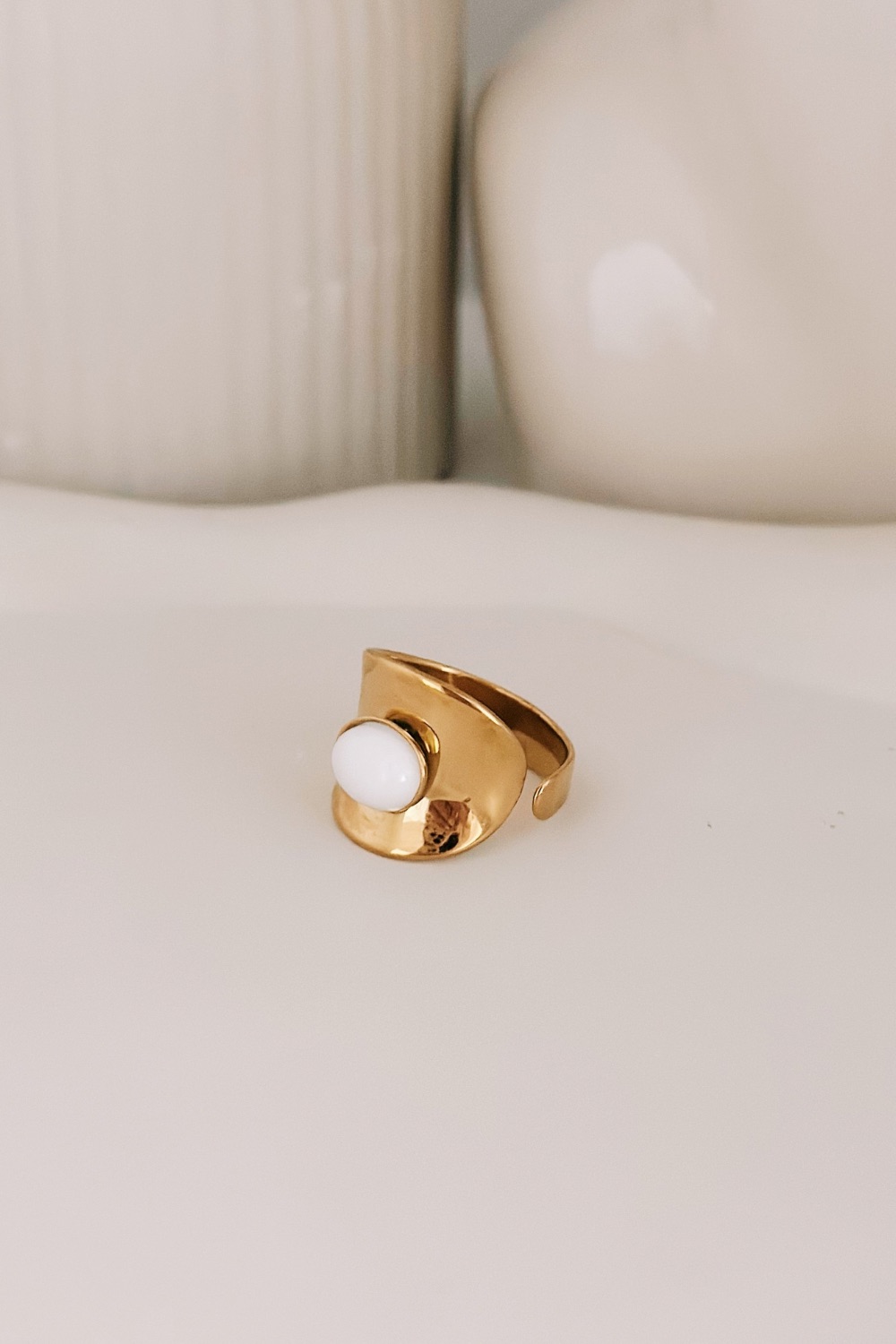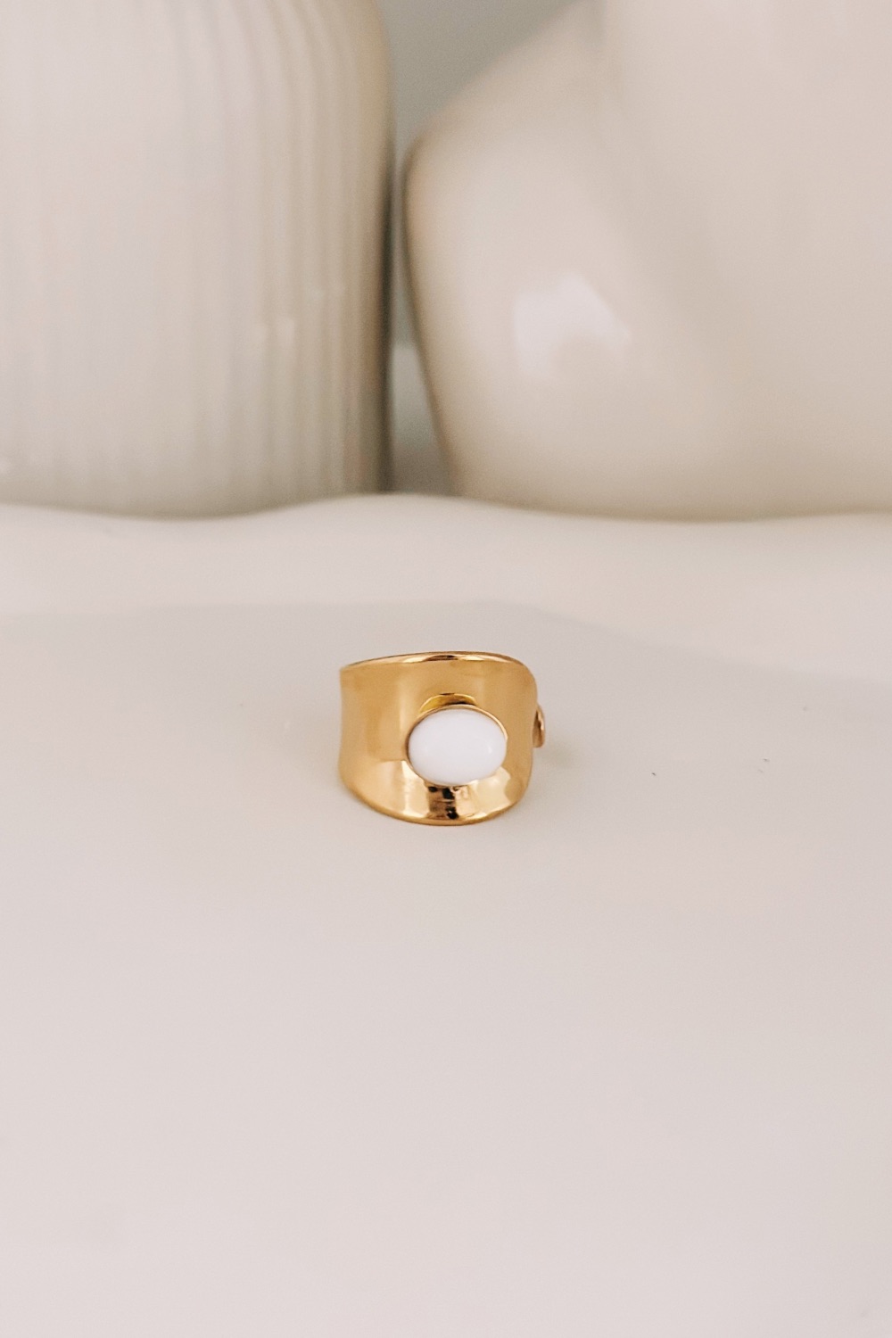 ● Επιχρυσωμένο ατσάλινο δαχτυλίδι και λευκή πέτρα