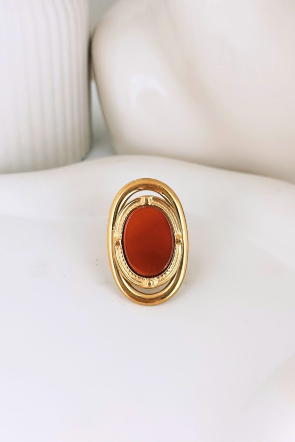 ● Επιχρυσωμένο ατσάλι και κόκκινη πέτρα