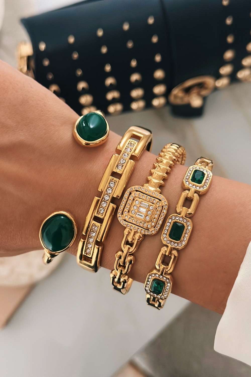 ● Επιχρυσωμένο ατσάλι και πράσινες πέτρες