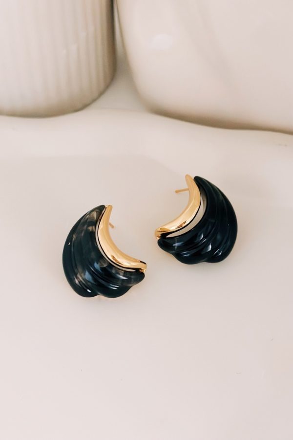 ● Υλικό : επιχρυσωμένο ορείχαλκος και μάυρη πέτρα από ακρυλική ρητίνη