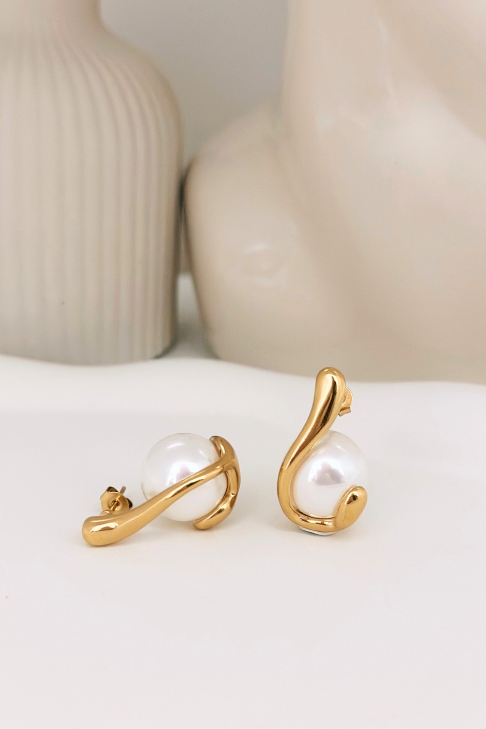 ● Υλικό : επιχρυσωμένο ατσάλι και άσπρη πέρλα