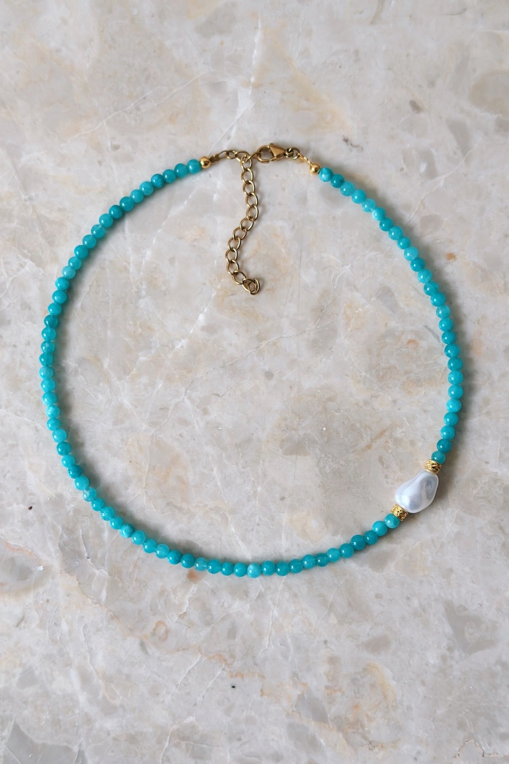 ● Υλικό: ημιπολύτιμος λίθος νεφρίτης,  επιχρυσωμένα ορειχάλκινα στοιχεία, συνθετική πέρλα , και κούμπωμα από επιχρυσωμένο ατσάλι.