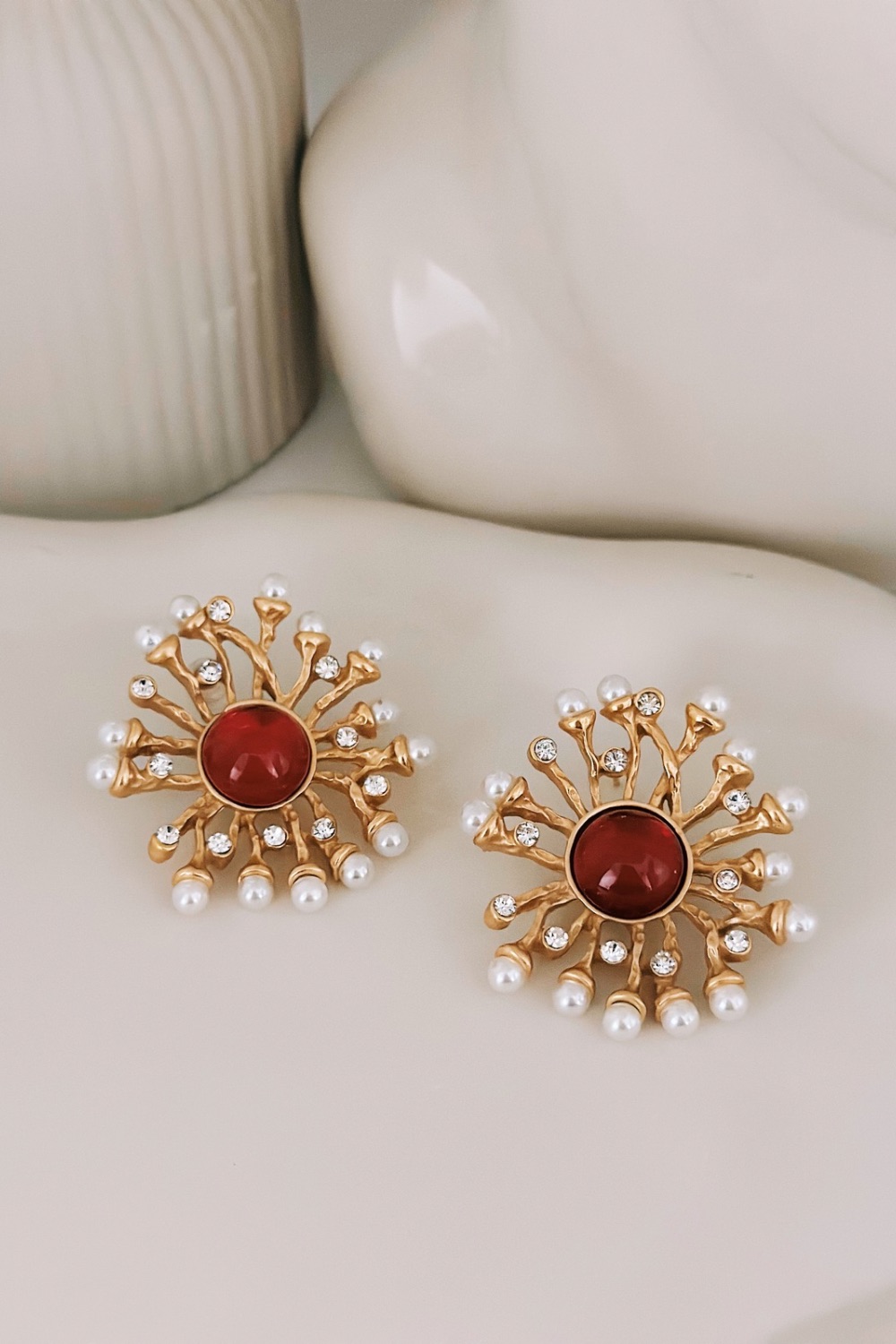 ● Υλικό : Επιχρυσωμένος ορείχαλκος και κόκκινη πέτρα, πετρούλες ζιρκόν και περλίτσες