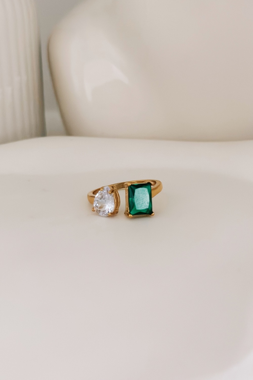● Επιχρυσωμένος ορείχαλκος με πράσινη πέτρα ζιρκόν
