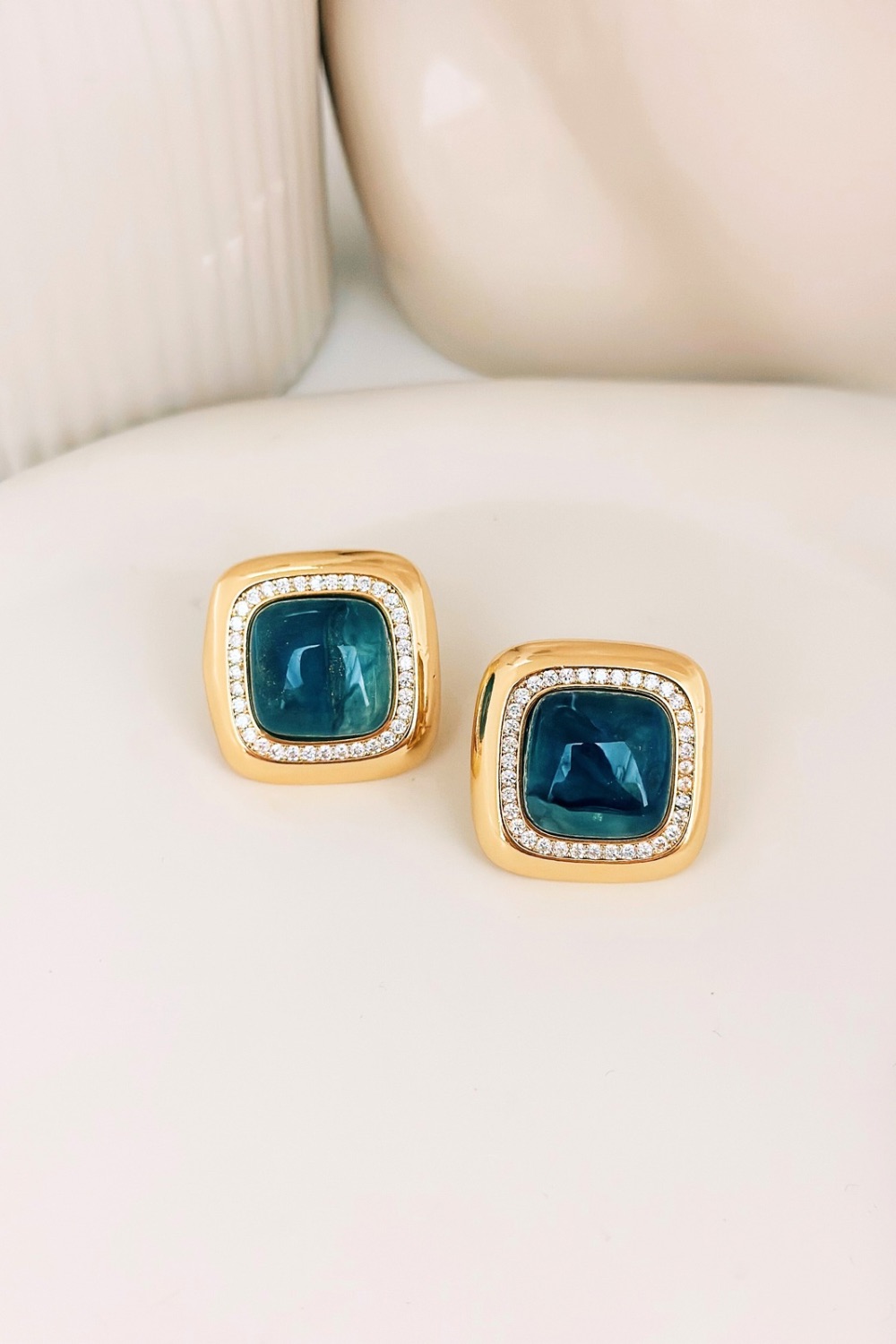 ● Υλικό : Επιχρυσωμένος ορείχαλκος με πετρόλ πέτρα και  πέτρες ζιρκόν, silver post