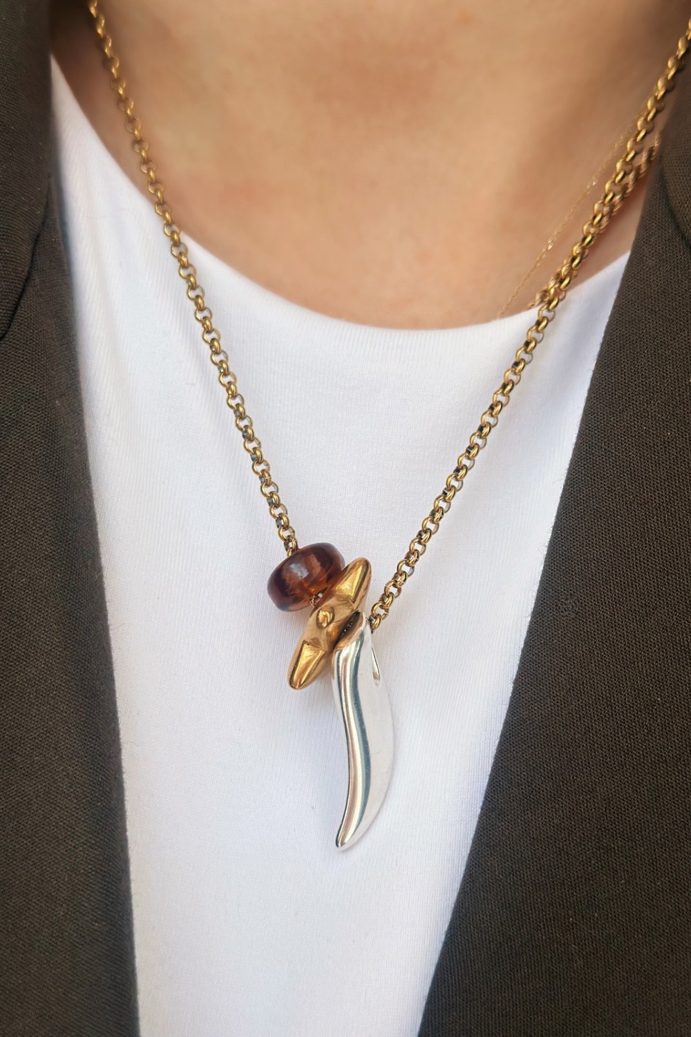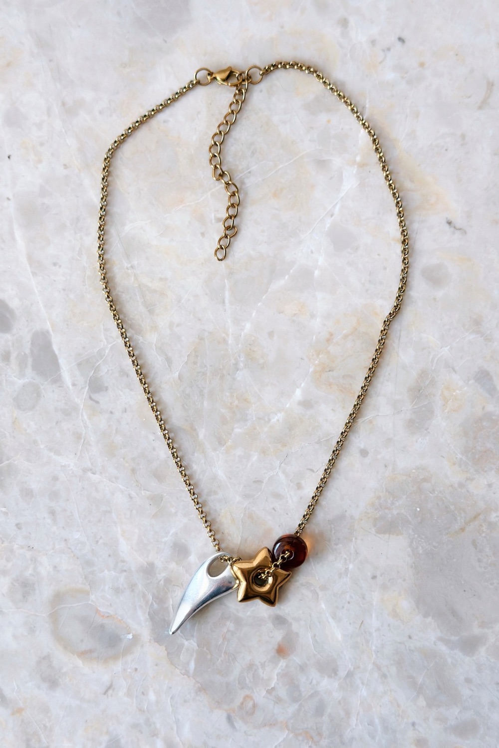 ● Υλικό: αλυσίδα από ατσάλι και  επιχρυσωμένα και επαργυρωμένα ορειχάλκινα στοιχεία