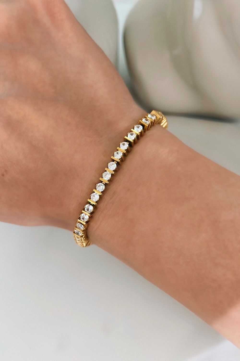 ● Επιχρυσωμένο ατσάλι και λευκές πέτρες ζιρκόν