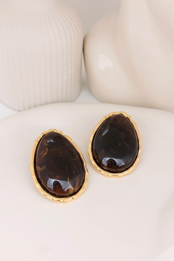 ● Υλικό : Επιχρυσωμένος ορείχαλκος  με καφέ πέτρα , silver post